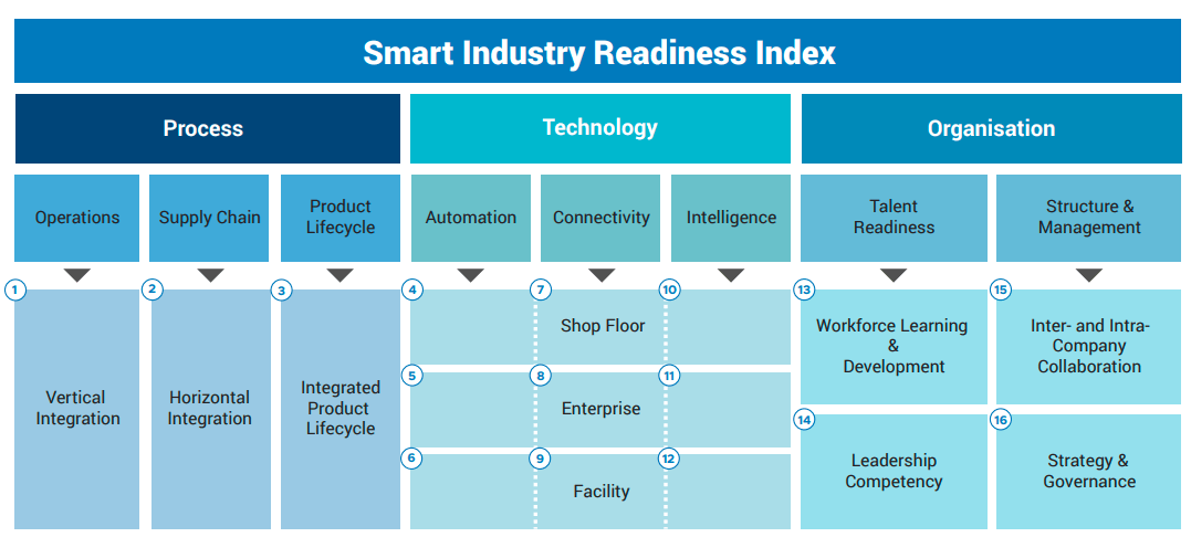 The Smart Industry Readiness Index (SIRI) is the world’s first independent digital maturity assessment for manufacturers. It comprises a suite of frameworks and tools to help manufacturers – regardless of size and industry – start, scale and sustain their manufacturing transformation journeys.